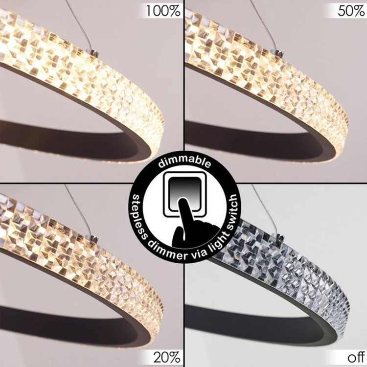 این مدل لوستر پادینا مدل نور به بیرون سه حلقه با روکش کریستال، با قطرهای 70_50_30 می باشد، که با رنگ بدنه سفید ، مشکی و طلایی وبا نور (چند رنگ) قابل انتخاب می باشد. ارتفاع لوستر از 20 تا 100 سانت قابل تغییر است ، همچنین میتوانید چیدمان لوستر را ، به طبقاتی یا کهکشانی تغییر دهید. با ریموت و اپلیکیشن موبایل میتوان نور لوستر را خاموش و روشن کرد ، طبقات را خاموش و روشن کرد ، و همچنین دکمه حالت شب از امکانات ریموت می باشد .