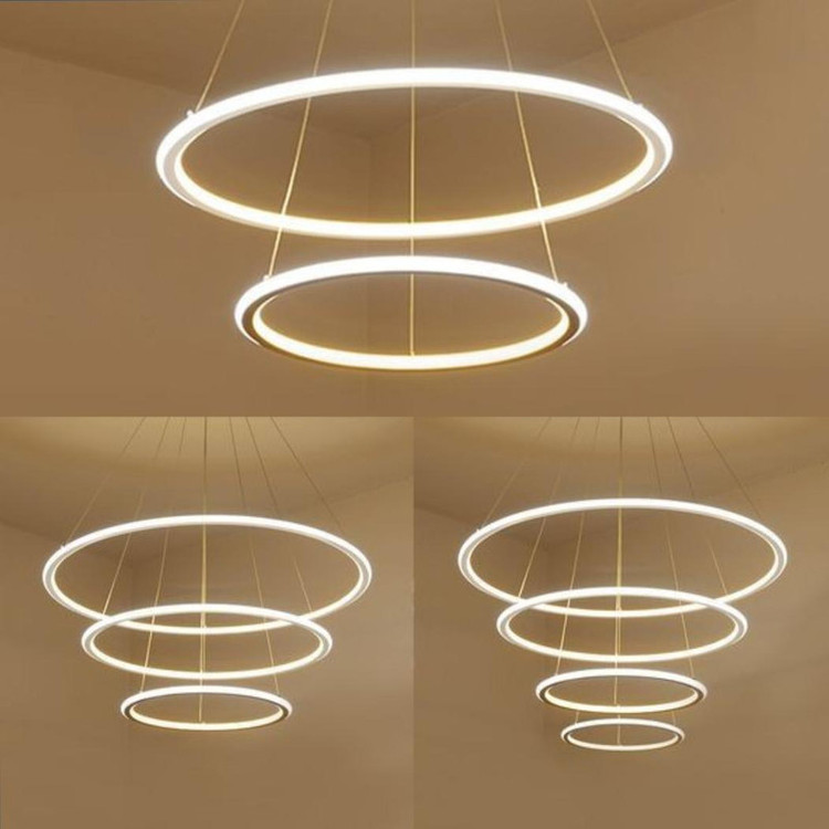 این مدل لوستر سه حلقه ،با قطرهای30-50-70 می باشد که از دو طرف حلقه ها پخش نور دارد ،که با بدنه سفید ارائه شده ، و در سه رنگ نور ،آفتابی و مهتابی و همزمان هردو (چند رنگ ) قابل انتخاب می باشد. ارتفاع لوستر از 20 سانت تا 80 سانت قابل تغییر است ،همچنین می توانید چیدمان لوستر را ، به طبقاتی یا کهکشانی تغییر دهید. با ریموت و اپلیکیشن موبایل میتوان نور لوستر را کم و زیاد کرد، تنظیم طیف نوری انجام دهید و همچنین دکمه حالت شب از امکانات ریموت می باشد.