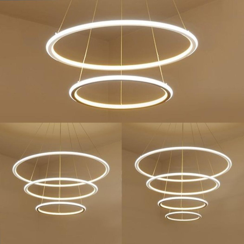 این مدل لوستر سه حلقه ،با قطرهای30-50-70 می باشد که از دو طرف حلقه ها پخش نور دارد ،که با بدنه سفید ارائه شده ، و در سه رنگ نور ،آفتابی و مهتابی و همزمان هردو (چند رنگ ) قابل انتخاب می باشد. ارتفاع لوستر از 20 سانت تا 80 سانت قابل تغییر است ،همچنین می توانید چیدمان لوستر را ، به طبقاتی یا کهکشانی تغییر دهید. با ریموت و اپلیکیشن موبایل میتوان نور لوستر را کم و زیاد کرد، تنظیم طیف نوری انجام دهید و همچنین دکمه حالت شب از امکانات ریموت می باشد.