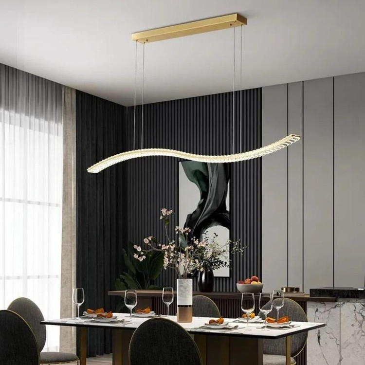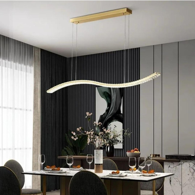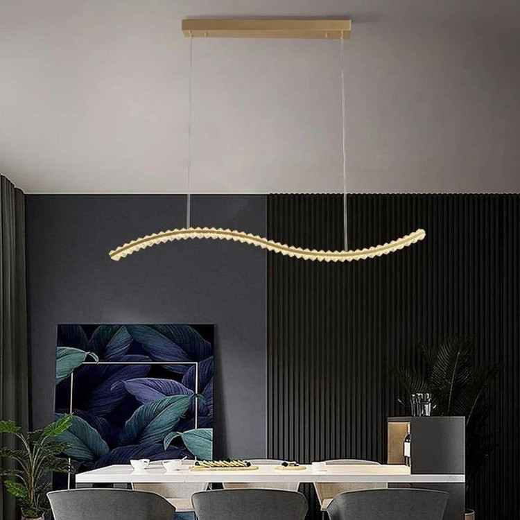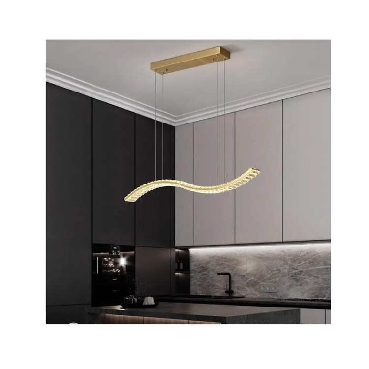 آویز مدرن به طول 90سانتیمتر، که با بدنه آبکاری طلایی ارائه شده وبا نور چند رنگ قابل انتخاب میباشد. باریموت و اپلیکیشن موبایل میتوان نور را به آفتابی ، مهتابی و نچرال تغییر داد ، نور را کم و زیاد ، خاموش و روشن ، یا به حالت شب تغییر بدهید