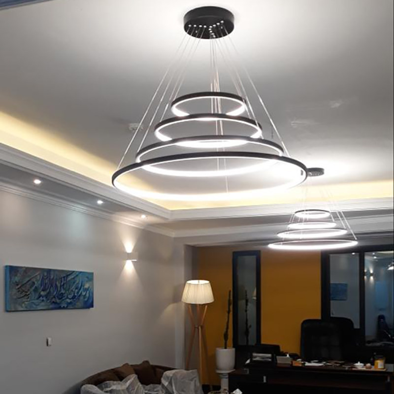 محصول لوستر چهار حلقه ،با قطرهای 35-50-70-90 می باشد ،که با بدنه مشکی ارائه شده ، و در سه رنگ نور ،آفتابی و مهتابی و همزمان هردو (چند رنگ ) قابل انتخاب می باشد. ارتفاع لوستر از 20 سانت تا 80 سانت قابل تغییر است ،همچنین می توانید چیدمان لوستر را ، به طبقاتی یا کهکشانی تغییر دهید. با ریموت و اپلیکیشن موبایل میتوان نور لوستر را کم و زیاد کرد ،طبقات را خاموش و روشن کرد ،و همچنین دکمه حالت شب از امکانات ریموت می باشد.