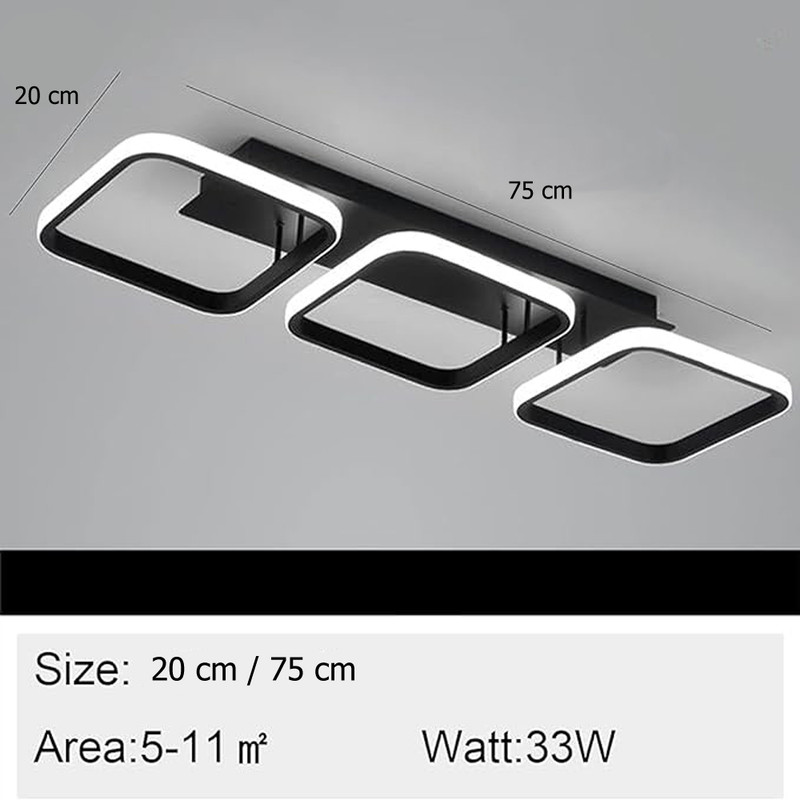 لوستر سقفی سه حلقه نور به بیرون به ابعاد 20*75 سانتیمتر و ارتفاع 15سانتیمتر ،رنگ بدنه مشکی استاتیک ،با نور نچرال ،و با کلید روی دیوار خاموش و روشن میشود