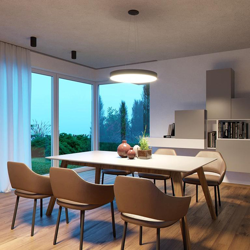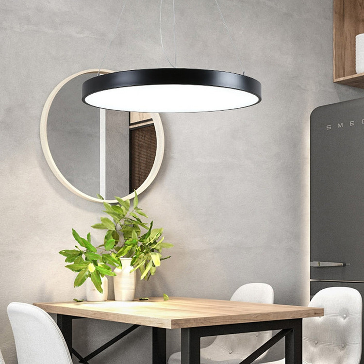 آویز مدرن دایره به قطر 55 سانتیمتر ،که با بدنه مشکی ارائه شده ،نور (چند رنگ ) قابل انتخاب می باشد. با ریموت و اپلیکیشن موبایل میتوان نور را به آفتابی ،مهتابی و نچرال تغییر داد ،نور را کم وزیاد، و خاموش و روشن ، و یا به حالت شب تغییر بدهید .