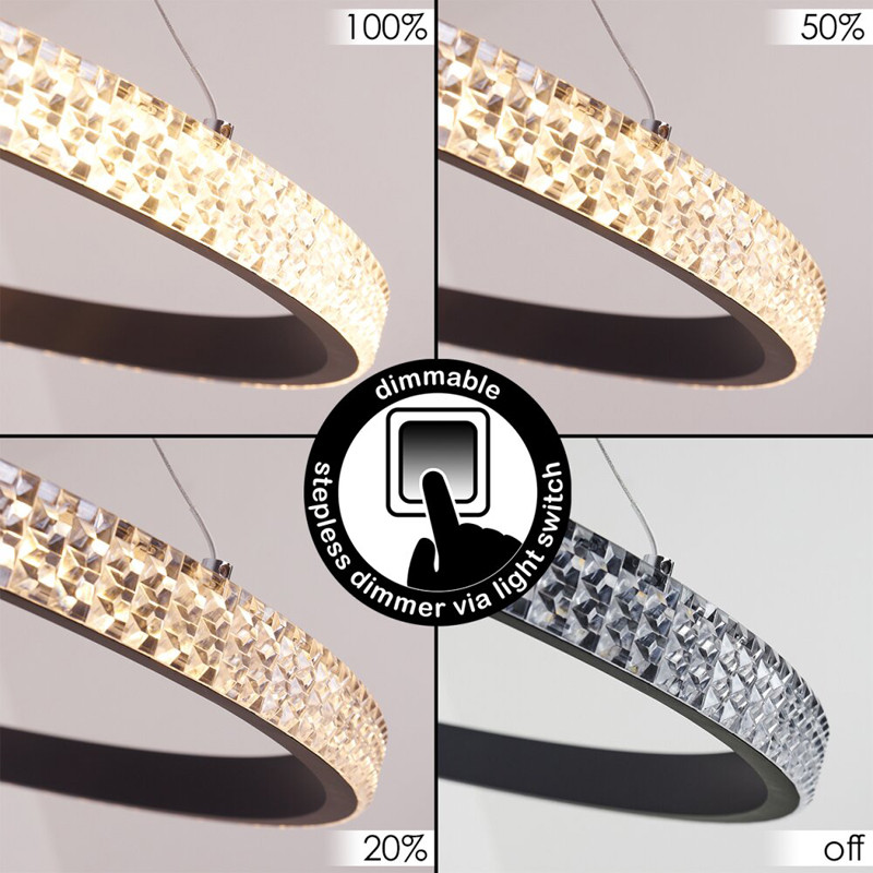 این مدل لوستر ام کی لایتینگ مدل نور به بیرون سه حلقه با روکش کریستال ،با قطرهای 70-50-30 می باشد ،که با رنگ بدنه سفید ،مشکی و طلایی ، و با نور (چند رنگ ) قابل انتخاب می باشد. ارتفاع لوستر از 20 سانت تا 80 سانت قابل تغییر است ،همچنین می توانید چیدمان لوستر را ، به طبقاتی یا کهکشانی تغییر دهید. با ریموت و اپلیکیشن موبایل میتوان نور لوستر را کم و زیاد کرد ،طبقات را خاموش و روشن کرد ،و همچنین دکمه حالت شب از امکانات ریموت می باشد.