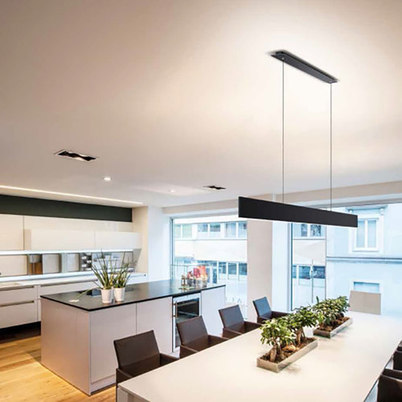 چراغ خطی آویز 30 وات مدل LH100 ، چراغی دکوراتیو با طول 100سانتیمتر ، ارتفاع 8سانتی متر و عرض 2.5 سانتیمتر است. این محصول به صورت خطی و آویز با جنس بدنه آلومینیوم طراحی شده است ،رنگ بدنه الکترواستاتیک مشکی و دارای قابلیت نصب آسان و سریع است. دیفیوزر چراغ از جنس پلی کربنات بوده و پخش نور آن یکنواخت است و نورپردازی زیبایی را برای محیط فراهم میکند. با توجه به نوع طراحی، انتخابی مناسب برای محیطهای مسکونی ،اداری مدرن ، تجاری و درمانی و کارخانجات است . چراغ با بهرهگیری از تکنولوژی جدید SMD LED ساخته شده است و محصولی بسیار کممصرف با طول عمر بالاست.