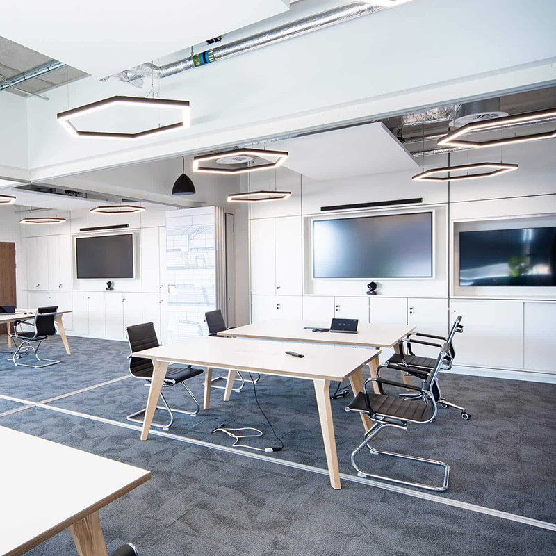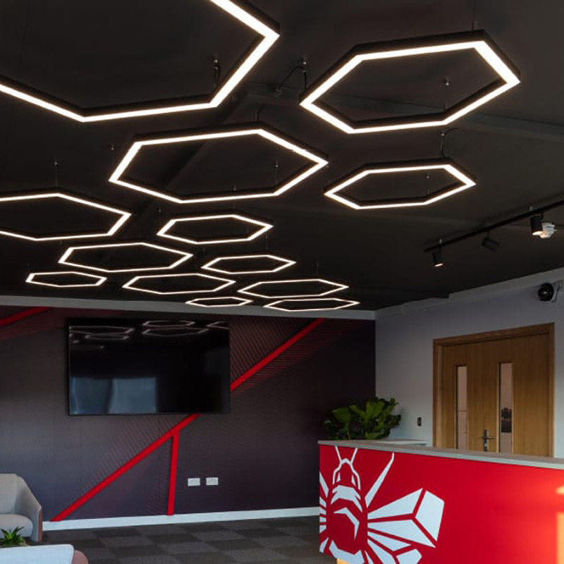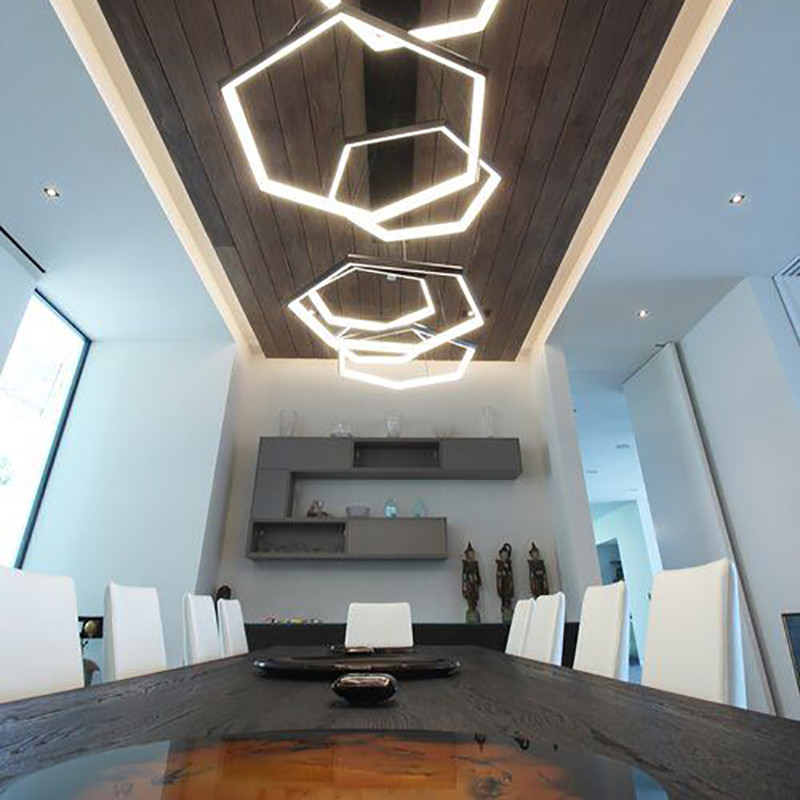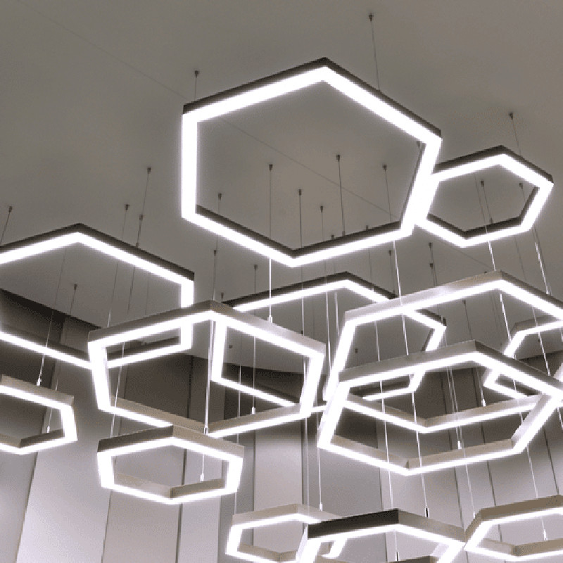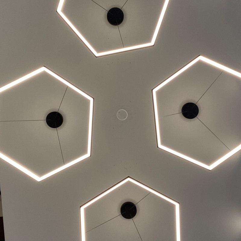 لوستر شش ضلعی به ابعاد 60 سانتیمتر ،نور به پایین ،رنگ بدنه مشکی استاتیک ،با نور چند رنگ ارائه میشود .با ریموت و اپلیکیشن موبایل میتوان نور را به آفتابی ،مهتابی و نچرال تغییر داد ،نور را کم وزیاد، و خاموش و روشن ، و یا به حالت شب تغییر بدهید .