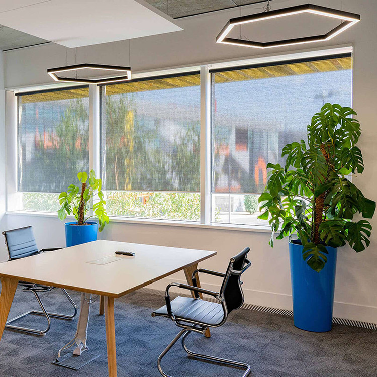 لوستر شش ضلعی به ابعاد 60 سانتیمتر ،نور به پایین ،رنگ بدنه مشکی استاتیک ،با نور چند رنگ ارائه میشود .با ریموت و اپلیکیشن موبایل میتوان نور را به آفتابی ،مهتابی و نچرال تغییر داد ،نور را کم وزیاد، و خاموش و روشن ، و یا به حالت شب تغییر بدهید .