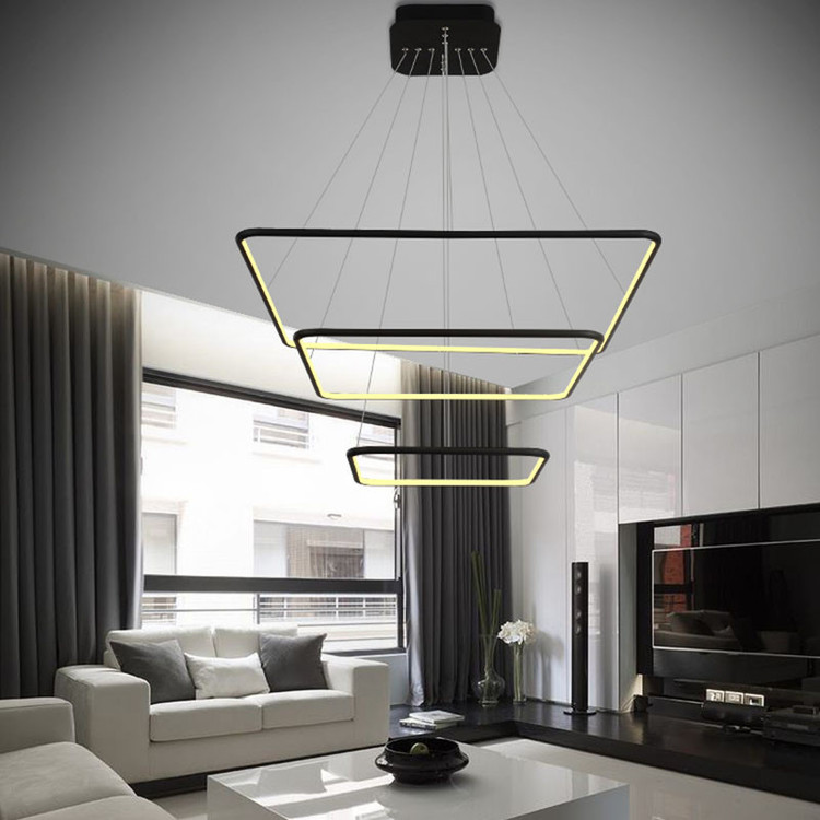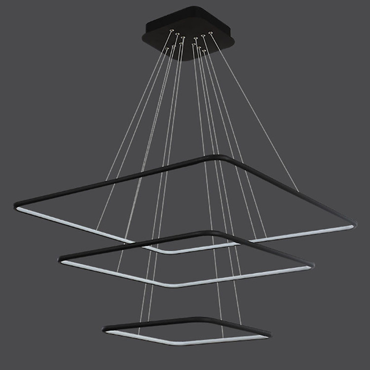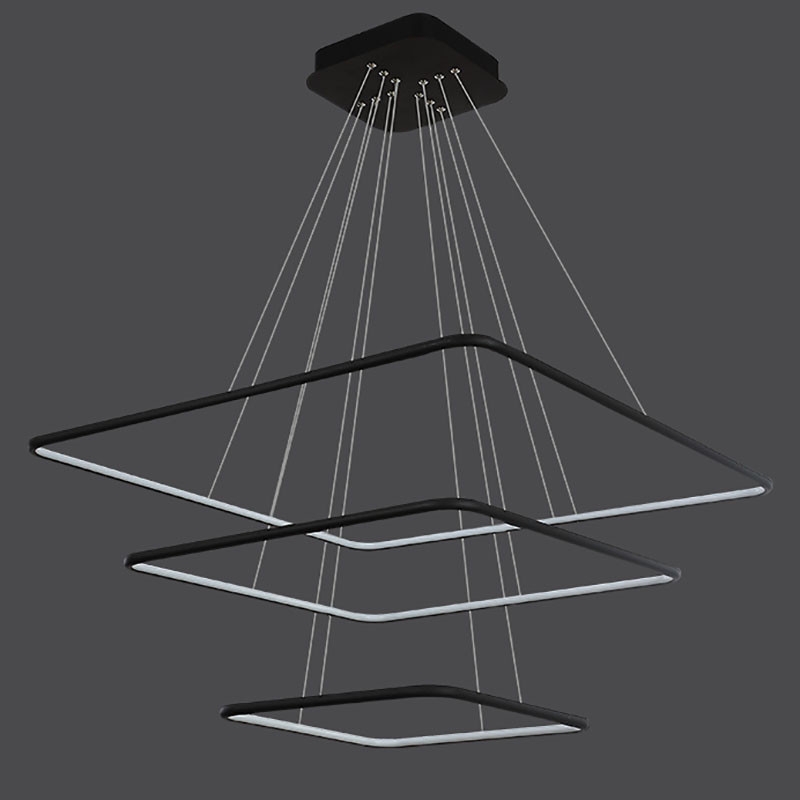 لوستر دو حلقه مربع به ابعاد 40-50-60 سانتیمتر ،رنگ بدنه مشکی استاتیک ،در سه نوع (آفتابی ،مهتابی و چند رنگ) ارائه میشود ،از امکانات ریموت می توان کم و زیاد کردن نور ،حالت شب ،اپلیکیشن موبایل(کم و زیاد کردن نور ،تغییر طیف نوری ،تنظیم زمان برای خاموش یا روشن شدن ) ارائه میشود.