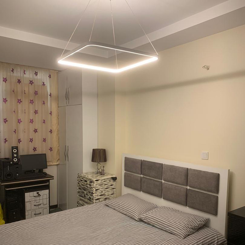 لوستر تک مربع به ابعاد 50 سانتیمتر ،رنگ بدنه سفید استاتیک ،در سه نوع (آفتابی ،مهتابی و چند رنگ) ارائه میشود .در نوع آفتابی و مهتابی فقط با کلید روی دیوار خاموش و روشن میشود ،ولی در نوع چند رنگ همراه با ریموت و اپلیکیشن موبایل(کم و زیاد کردن نور ،تغییر طیف نوری ،تنظیم زمان برای خاموش یا روشن شدن ) ارائه میشود