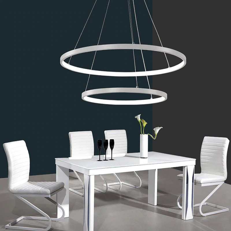 لوستر دو حلقه دایره به ابعاد 50-70 سانتیمتر ،رنگ بدنه سفید استاتیک ،در سه نوع (آفتابی ،مهتابی و چند رنگ) ارائه میشود ،از امکانات ریموت می توان کم و زیاد کردن نور ،حالت شب ،اپلیکیشن موبایل(کم و زیاد کردن نور ،تغییر طیف نوری ،تنظیم زمان برای خاموش یا روشن شدن ) ارائه میشود