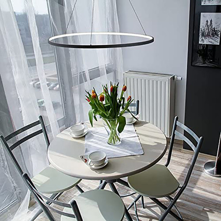 لوستر تک دایره به ابعاد 50 سانتیمتر ،رنگ بدنه مشکی استاتیک ،در سه نوع (آفتابی ،مهتابی و چند رنگ) ارائه میشود .در نوع آفتابی و مهتابی فقط با کلید روی دیوار خاموش و روشن میشود ،ولی در نوع چند رنگ همراه با ریموت و اپلیکیشن موبایل(کم و زیاد کردن نور ،تغییر طیف نوری ،تنظیم زمان برای خاموش یا روشن شدن ) ارائه میشود
