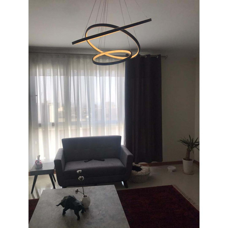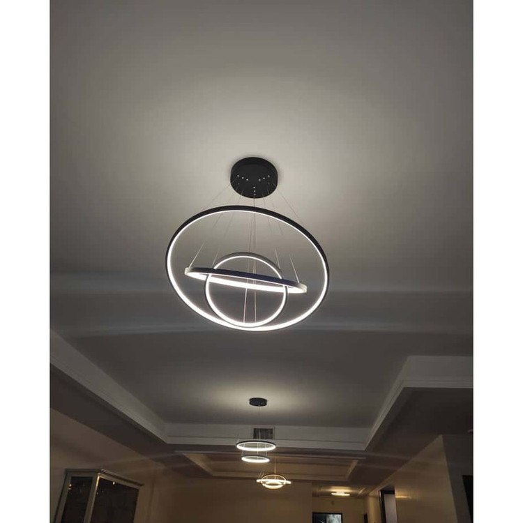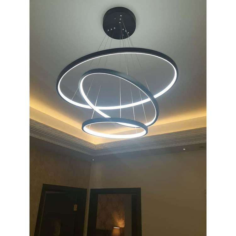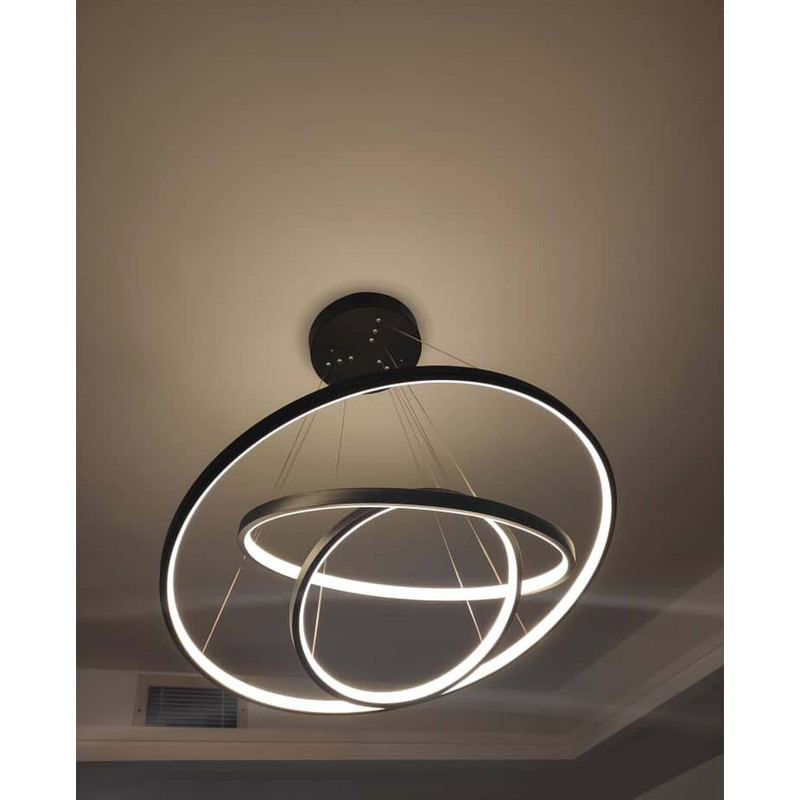 این مدل لوستر سه حلقه ،با قطرهای 70-50-35 می باشد ،که با بدنه مشکی ارائه شده ، و در سه رنگ نور ،آفتابی و مهتابی و همزمان هردو (چند رنگ ) قابل انتخاب می باشد.