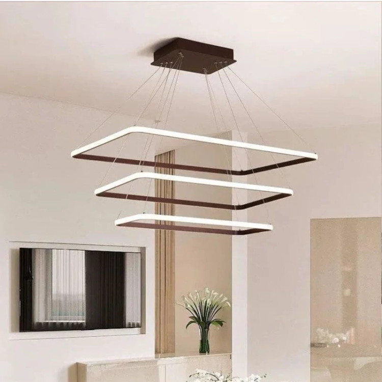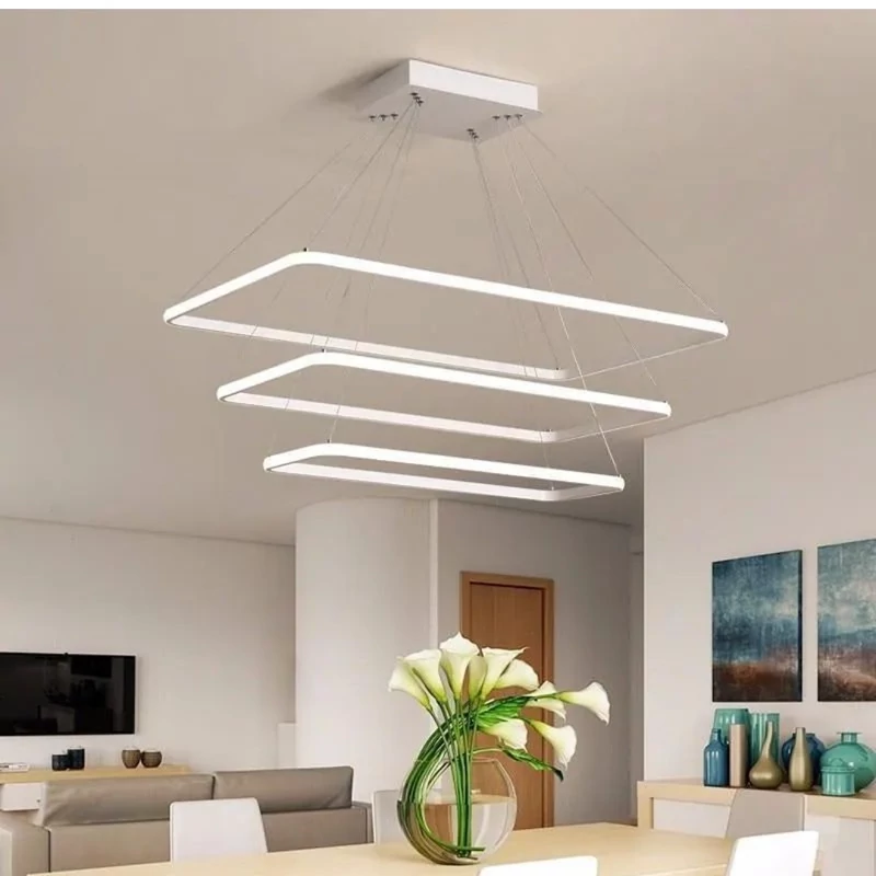لوستر مدرن مستطیل سه طبقه چهار حالته دارای ریموت کنترل دیمردار و اپ موبایل