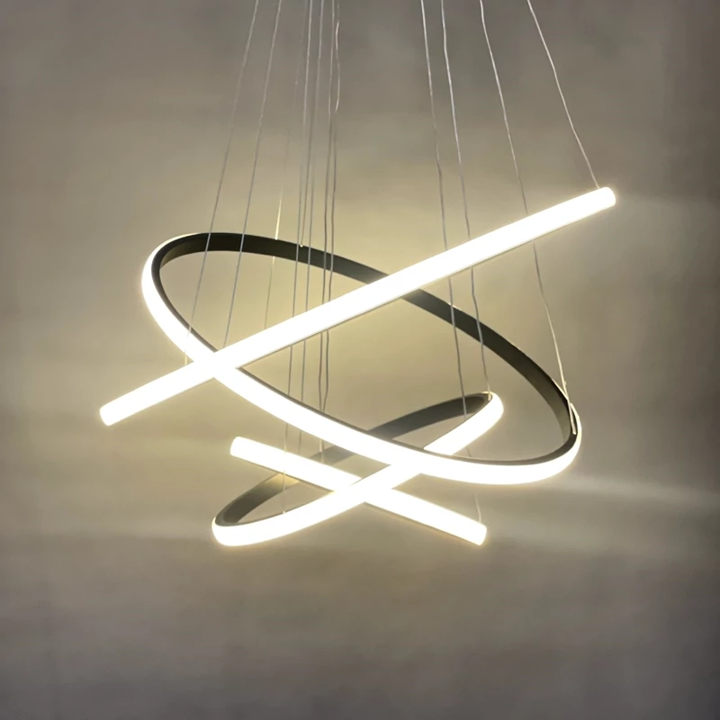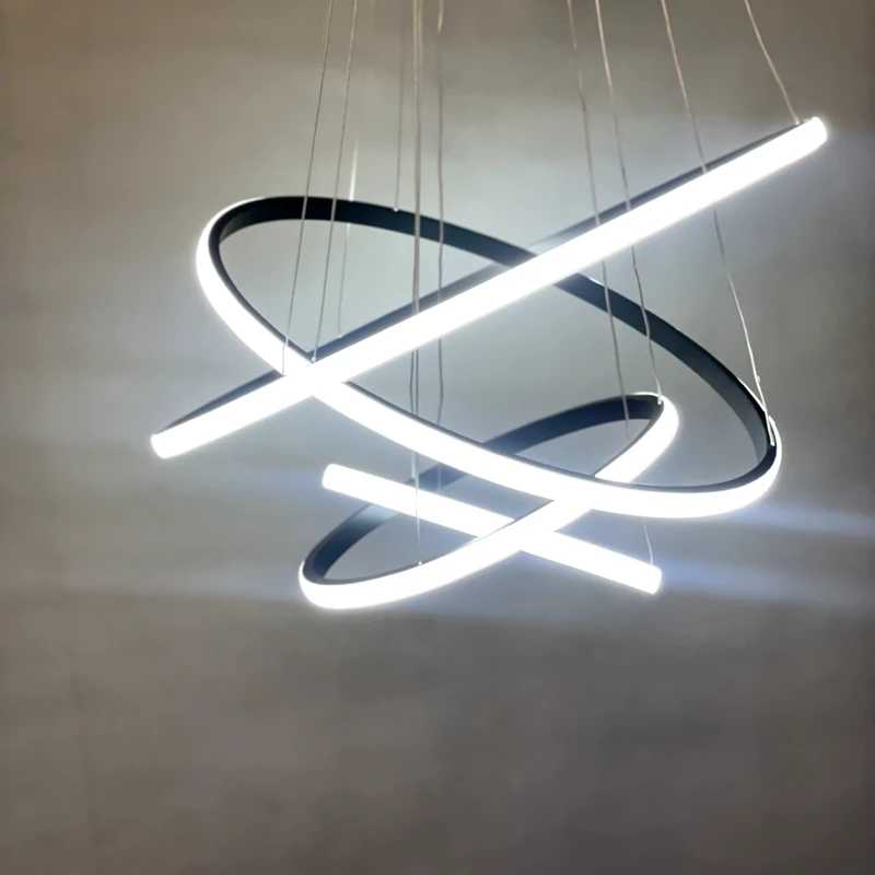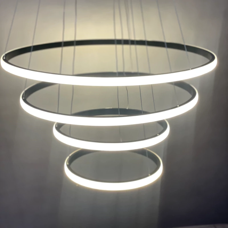 - لوستر مدرن تشکیل شده از 4حلقه به سایزهای 20/30/40/50 - موجود در رنگ، مشکی مات - دارای چهار حالت آفتابی ، مهتابی، نچرال و حالت شب - قابل کنترل با ریموت کنترل و اپ موبایل - نور این لوستر رو به بیرون است که بر خلاف نور داخل، پخش نور بالایی دارد. - آلومینیوم به کار رفته فابریک میباشد که در انتقال حرارت و در نتیجه عمر کار تاثیر زیادی دارد. - این محصول به طور مستقیم و بدون واسطه با بالاترین کیفیت و نازل ترین قیمت از تولیدی به دست شما میرسد. _مناسب برای فضای تا 20 متر - ارتفاع این لوستر از 30 سانتی متر تا 1 متر قابل تنظیم است و با تغییر ارتفاع میتوان طرح های مختلفی ساخت. - ریموت کنترل به همراه محصول ارسال میشود. - دارای گارانتی و خدمات پس از فروش