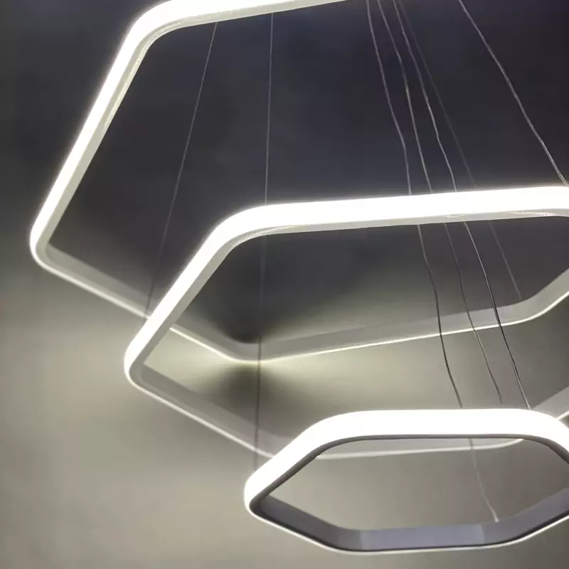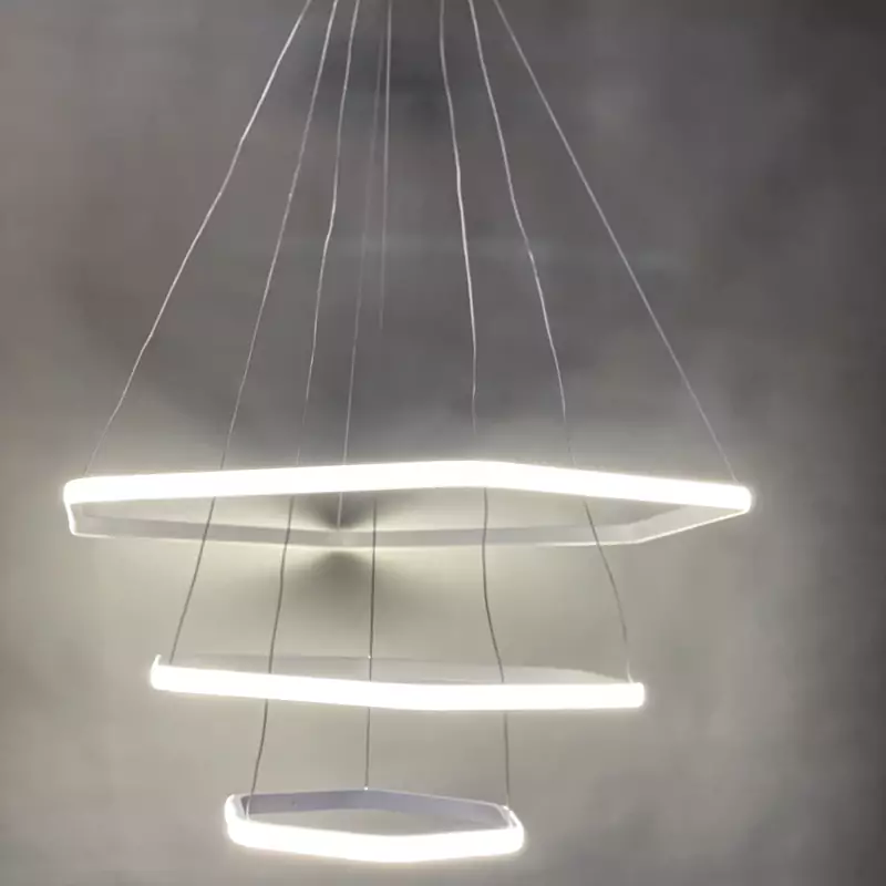 - لوستر مدرن تشکیل شده از 3 حلقه به سایزهای 30 و 50 و 70 - موجود در رنگ مشکی سوپر مات - دارای چهار حالت آفتابی ، مهتابی، نچرال و حالت شب - قابل کنترل با ریموت کنترل و اپ موبایل - نور این لوستر رو به بیرون است که بر خلاف نور داخل، پخش نور بالایی دارد. - آلومینیوم به کار رفته فابریک میباشد که در انتقال حرارت و در نتیجه عمر کار تاثیر زیادی دارد. - این محصول به طور مستقیم و بدون واسطه با بالاترین کیفیت و نازل ترین قیمت از تولیدی به دست شما میرسد. - ارتفاع این لوستر از 30 سانتی متر تا 1 متر قابل تنظیم است و با تغییر ارتفاع میتوان طرح های مختلفی ساخت. - ریموت کنترل به همراه محصول ارسال میشود. - دارای گارانتی و خدمات پس از فروش