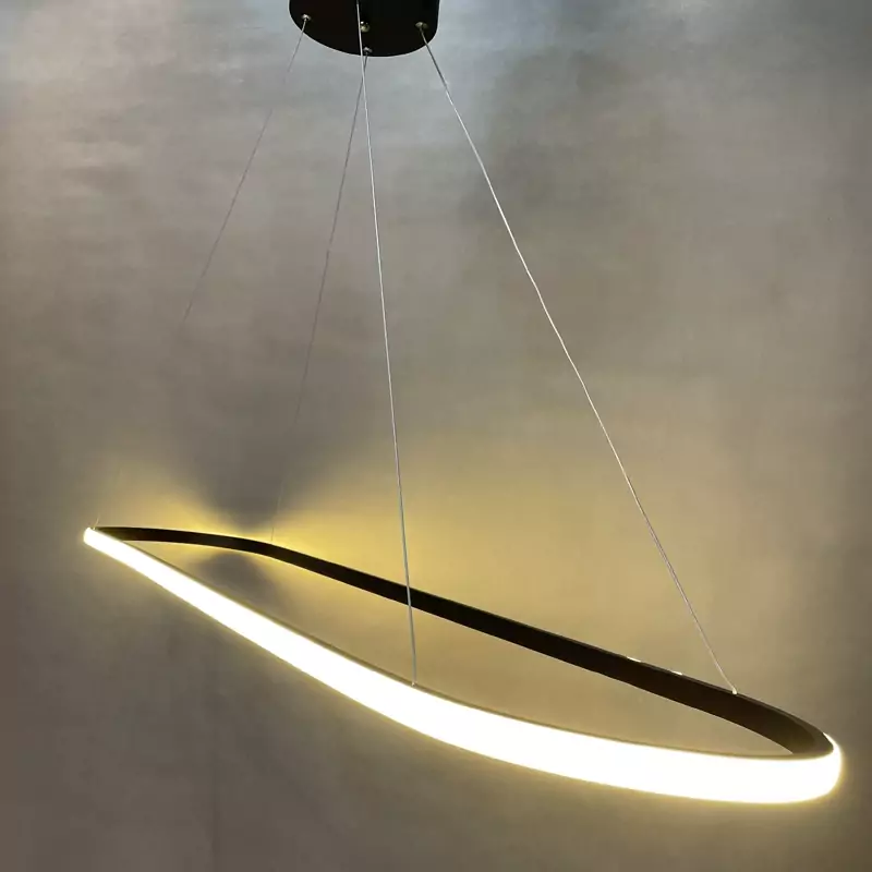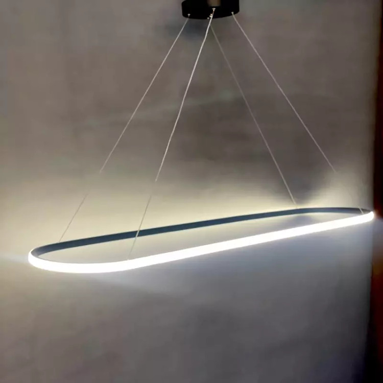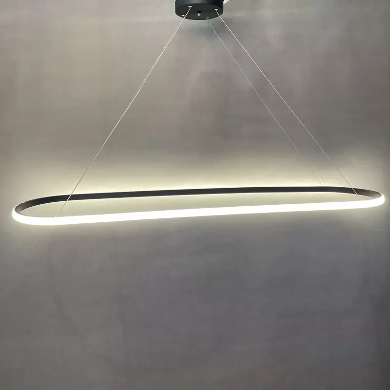 _لوستر مدرن بیضی دارای طول 120سانتی متر و عرض 30 سانتی متر می باشد. _موجود در رنگ ،مشکی سوپرمات _دارای چهار حالت آفتابی،مهتابی،نچرال و حالت شب _قابل کنترل با ریموت کنترل و اپ موبایل _نور این لوستر به بیرون است که برخلاف نور داخل،پخش نور بالایی دارد. _آلومینیوم به کار رفته فابریک می باشد که در انتقال حرارت و در نتیجه عمر کار تاثیر زیادی دارد. _این محصول به طور مستقیم و بدون واسطه با بالاترین کیفیت و نازل ترین قیمت از تولیدی به دست شما میرسد. _ارتفاع این لوستر از 30 سانتی متر تا 1 متر قابل تنظیم است. _ریموت کنترل به همراه محصول ارسال می شود. _دارای گارانتی و خدمات پس از فروش