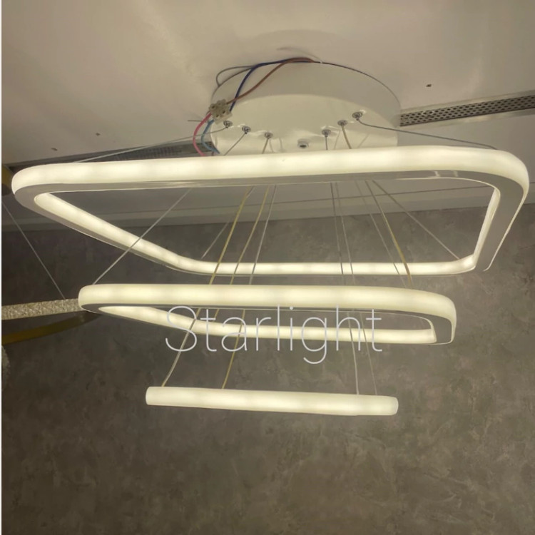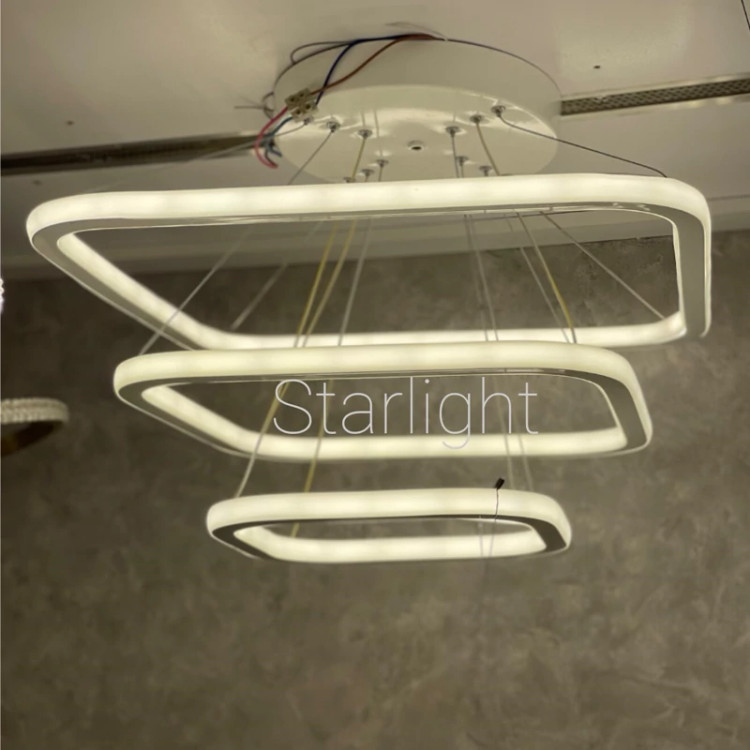 لوستر مدرن مربع سه طبقه دو طرف نور چهار حالت نوری دارای ریموت کنترل و اپ موبایل