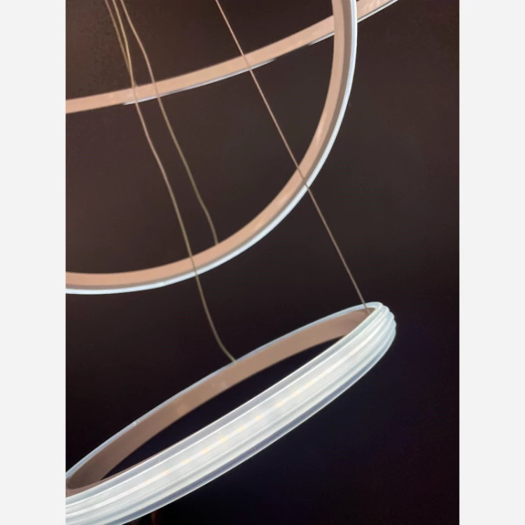 لوستر مدرن تشکیل شده از 3 حلقه به سایزهای 30 و 50 و 70 است. _برخلاف 70/50/30 سیلیکونی رویه ی این کار از جنس اکو است که طرح جدیدتری است. - موجود در رنگ مشکی سوپر مات و سفید - دارای چهار حالت آفتابی ، مهتابی، نچرال و حالت شب - قابل کنترل با ریموت کنترل و اپ موبایل - نور این لوستر رو به بیرون است که بر خلاف نور داخل، پخش نور بالایی دارد. - آلومینیوم به کار رفته فابریک میباشد که در انتقال حرارت و در نتیجه عمر کار تاثیر زیادی دارد. - این محصول به طور مستقیم و بدون واسطه با بالاترین کیفیت و نازل ترین قیمت از تولیدی به دست شما میرسد. - ارتفاع این لوستر از 30 سانتی متر تا 1 متر قابل تنظیم است و با تغییر ارتفاع میتوان طرح های مختلفی ساخت. - ریموت کنترل به همراه محصول ارسال میشود. - دارای گارانتی و خدمات پس از فروش