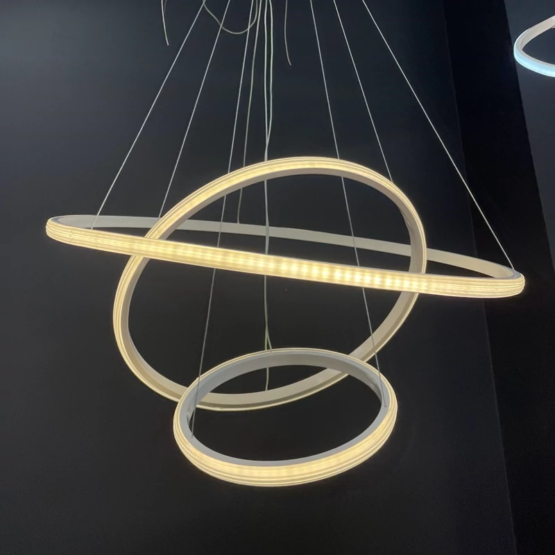 لوستر مدرن تشکیل شده از 3 حلقه به سایزهای 30 و 50 و 70 است. _برخلاف 70/50/30 سیلیکونی رویه ی این کار از جنس اکو است که طرح جدیدتری است. - موجود در رنگ مشکی سوپر مات و سفید - دارای چهار حالت آفتابی ، مهتابی، نچرال و حالت شب - قابل کنترل با ریموت کنترل و اپ موبایل - نور این لوستر رو به بیرون است که بر خلاف نور داخل، پخش نور بالایی دارد. - آلومینیوم به کار رفته فابریک میباشد که در انتقال حرارت و در نتیجه عمر کار تاثیر زیادی دارد. - این محصول به طور مستقیم و بدون واسطه با بالاترین کیفیت و نازل ترین قیمت از تولیدی به دست شما میرسد. - ارتفاع این لوستر از 30 سانتی متر تا 1 متر قابل تنظیم است و با تغییر ارتفاع میتوان طرح های مختلفی ساخت. - ریموت کنترل به همراه محصول ارسال میشود. - دارای گارانتی و خدمات پس از فروش
