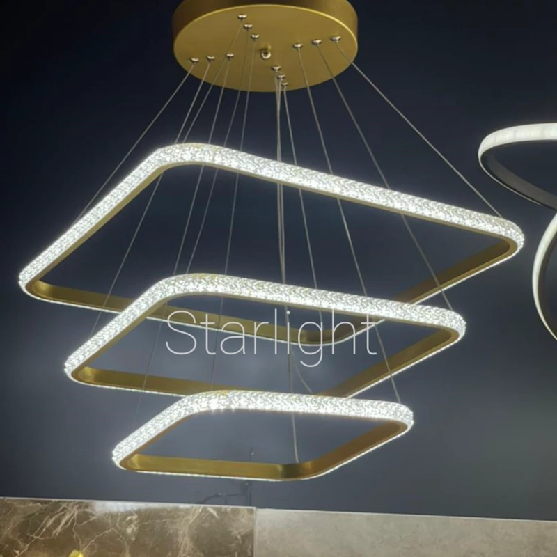 لوستر مربع سه طبقه اپوکسی چهار حالت نوری دارای ریموت کنترل و اپ موبایل