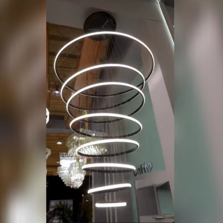 لوستر هشت حلقه تشکیل شده از حلقه هایی به قطرهای 90،80،70،60،50،40،30،20 سانتی متر - موجود در چهار رنگ طلایی، نقره ای، مشکی سوپر مات و سفید - دارای چهار حالت آفتابی ، مهتابی، نچرال و حالت شب - قابل کنترل با ریموت کنترل و اپ موبایل - نور این لوستر رو به بیرون است که بر خلاف نور داخل، پخش نور بالایی دارد. - آلومینیوم به کار رفته فابریک میباشد که در انتقال حرارت و در نتیجه عمر کار تاثیر زیادی دارد. - این محصول به طور مستقیم و بدون واسطه با بالاترین کیفیت و نازل ترین قیمت از تولیدی به دست شما میرسد. - ارتفاع این لوستر تا 2 متر قابل تنظیم می باشد. - ریموت کنترل به همراه محصول ارسال میشود. - دارای گارانتی و خدمات پس از فروش