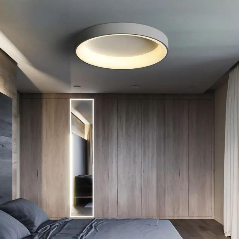 لوستر سقفی مدرن دایره شکل با قطر 60 سانتیمتر و رنگ بدنه مشکی مات استاتیک، سفید و طوسی و نور (چند رنگ)