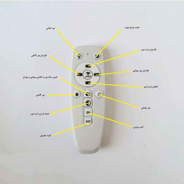 آویز مدرن دایره شکل با قطر 60 سانتیمتر و رنگ بدنه مشکی مات استاتیک، سفید و طوسی و نور (چند رنگ) قابل انتخاب میباشد،که با ریموت و اپلیکیشن موبایل میتوان نور را به آفتابی ، مهتابی و نچرال تغییر داد و همچنین شدت نور را کم و زیاد و یا خاموش و روشن و یا حالت شب تغییر داد،ارتفاع محصول B_ringo60 امیران لایتینگ قابل تنظیم از 20 سانتیمتر تا 100 سانتیمتر میباشد