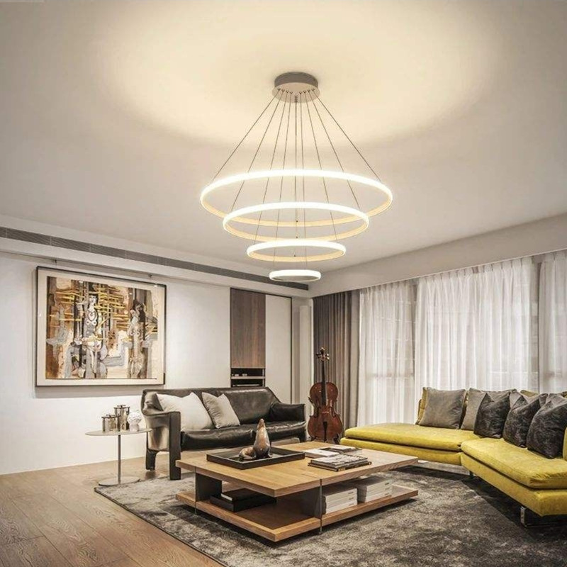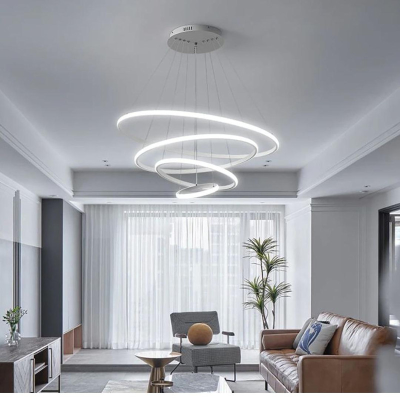 این مدل لوستر چهار حلقه نور به بیرون ،با قطرهای 35-50-70-90 می باشد ،که با بدنه سفید ارائه شده ، و در سه رنگ نور ،آفتابی و مهتابی و همزمان هردو (چند رنگ ) قابل انتخاب می باشد. ارتفاع لوستر از 20 سانت تا 80 سانت قابل تغییر است ،همچنین می توانید چیدمان لوستر را ، به طبقاتی یا کهکشانی تغییر دهید. با ریموت و اپلیکیشن موبایل میتوان نور لوستر را کم و زیاد کرد ،طبقات را خاموش و روشن کرد ،و همچنین دکمه حالت شب از امکانات ریموت می باشد.و همچنین تغییر رنگ نور در مدل چندرنگ .