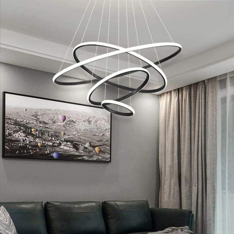 محصول لوستر چهار حلقه نور به بیرون ،با قطرهای 35-50-70-90 می باشد ،که با بدنه مشکی ارائه شده ، و در سه رنگ نور ،آفتابی و مهتابی و همزمان هردو (چند رنگ ) قابل انتخاب می باشد. ارتفاع لوستر از 20 سانت تا 80 سانت قابل تغییر است ،همچنین می توانید چیدمان لوستر را ، به طبقاتی یا کهکشانی تغییر دهید. با ریموت و اپلیکیشن موبایل میتوان نور لوستر را کم و زیاد کرد ،طبقات را خاموش و روشن کرد ،و همچنین دکمه حالت شب از امکانات ریموت می باشد.